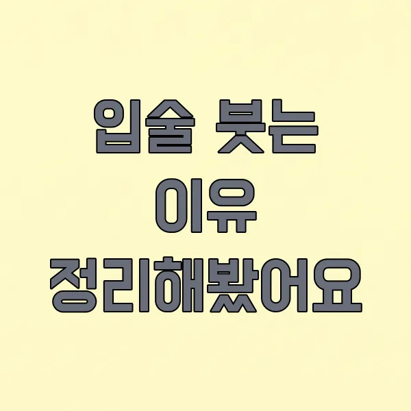 겨울철처럼 건조한 환경이나, 입술을 자주 핥는 습관도 입술의 수분을 빼앗아 상태를 악화시킬 수 있어요. 평소 입술 보습에 신경 써주는 것이 붓기를 예방하는 데 큰 도움이 될 수 있답니다.